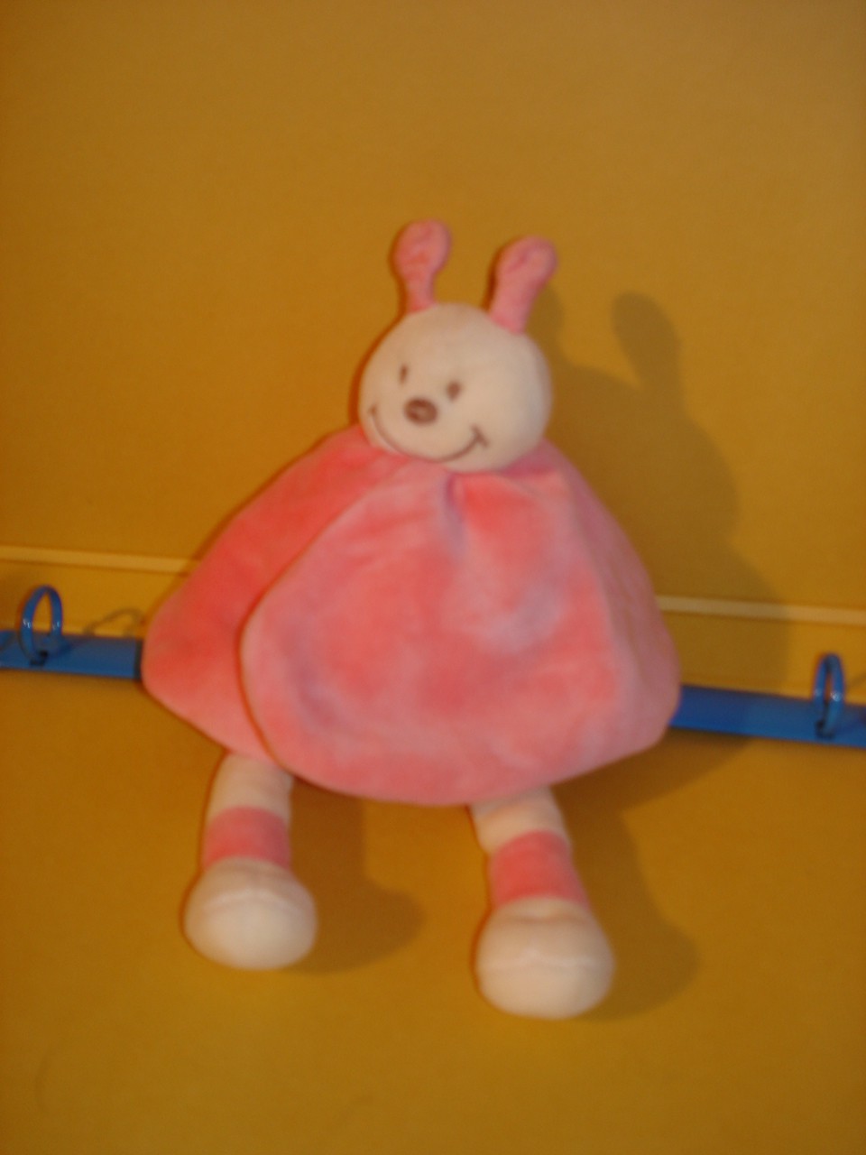 Doudou de 24 cm Rose et blanc Matière velours Doudou avec le bout des antennes un petit peu rèche
