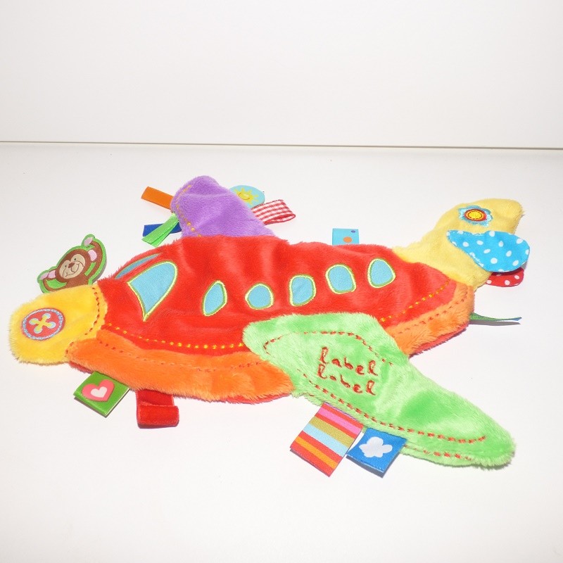 Doudou Avion Plat Multicouleurs Label