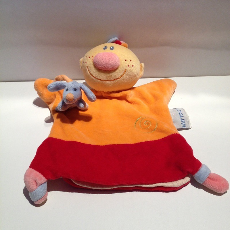Doudou Bonhomme Marionnette Bill et Babette Orange Nattou