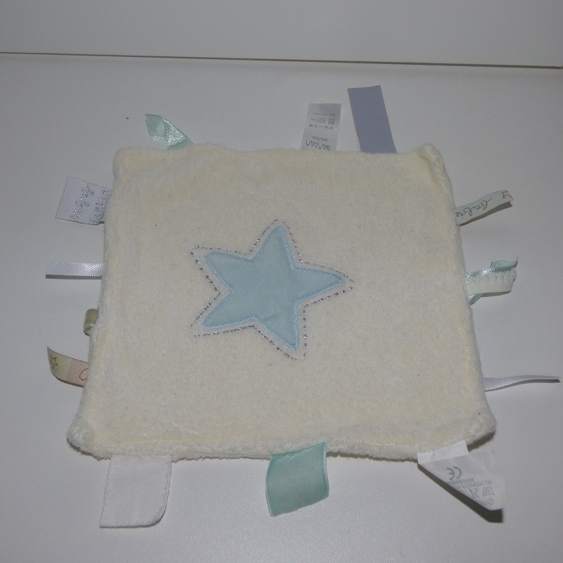 Doudou Carré Plat Blanc Etoile Bleu Bambam