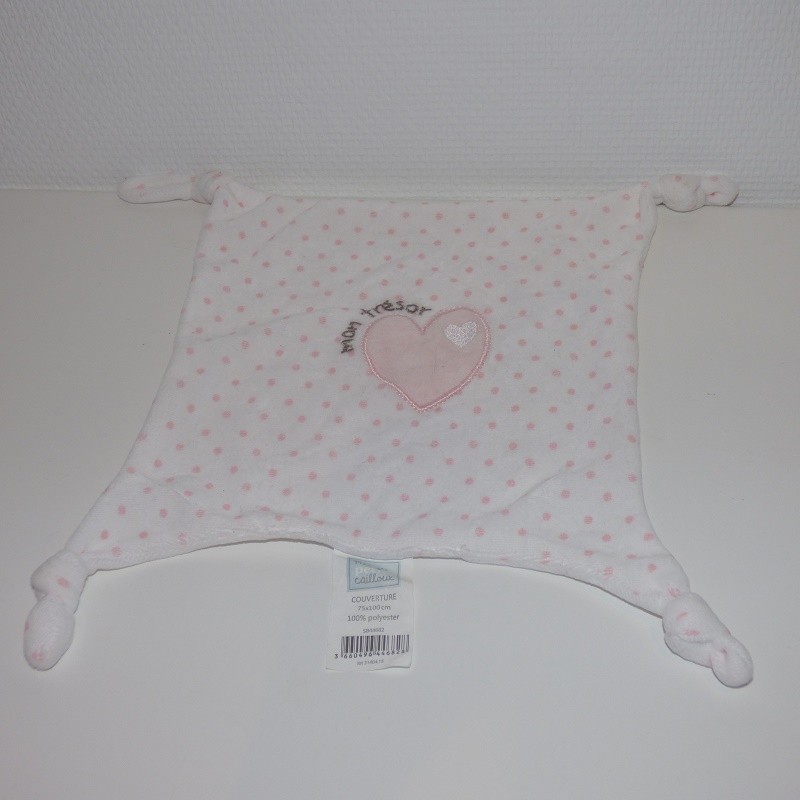 Doudou Carré Plat Coeur Rose et Blanc Mes petits Cailloux
