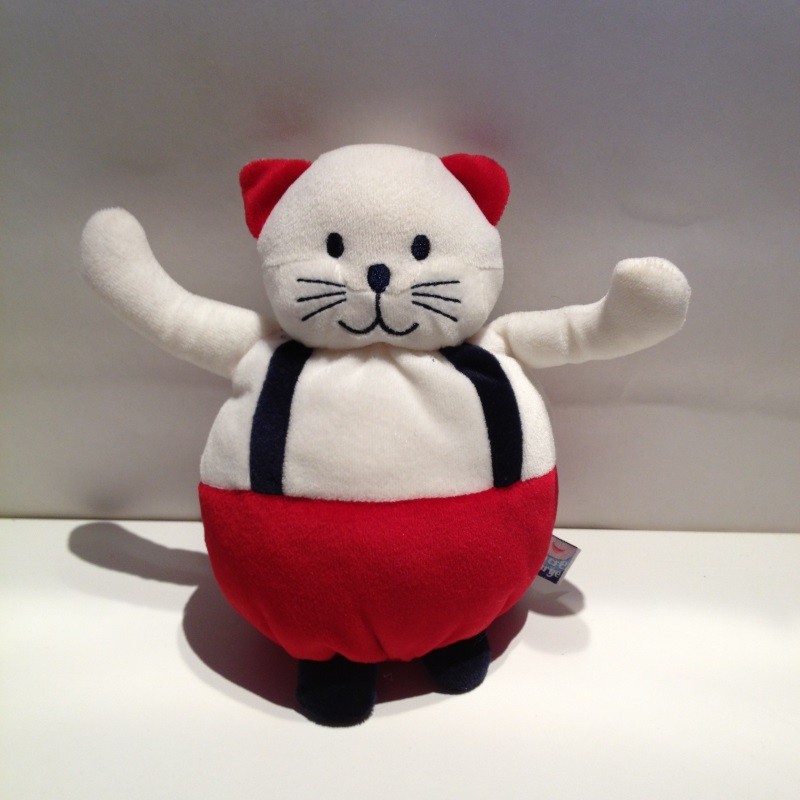 Doudou Chat Blanc Salopette Rouge Sucre d Orge