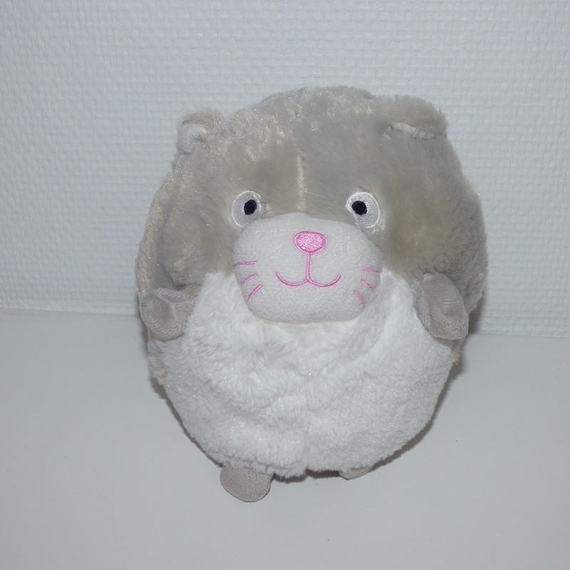 quantité de Doudou Chat Boule Blanc et Gris Les Comptoirs du Monde