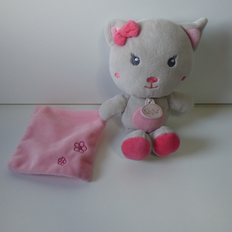 Doudou Chat Gis et Rose Mouchoir Babynat