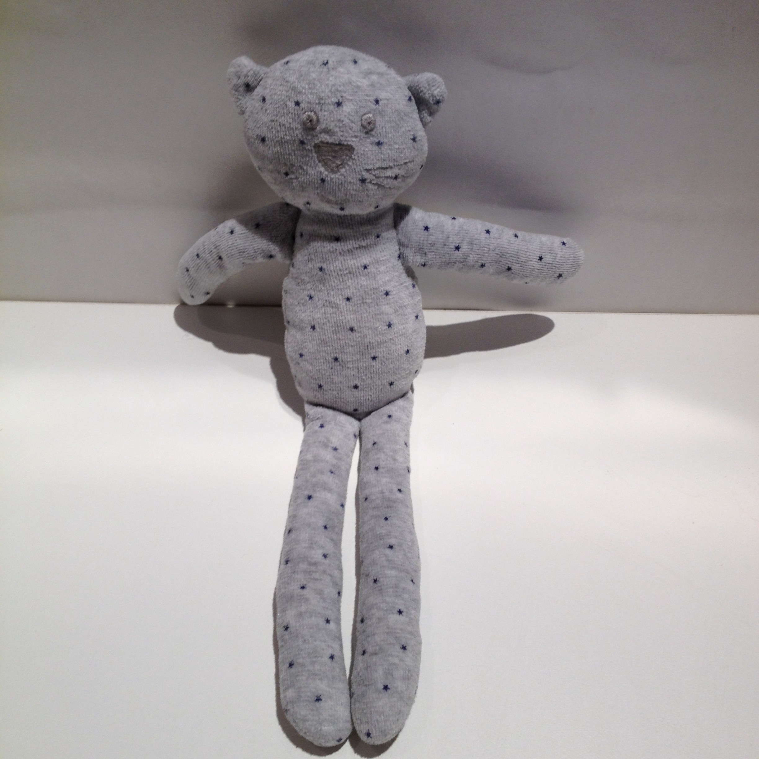 Doudou Chat Gris Etoiles Bleues Velours Bout Chou