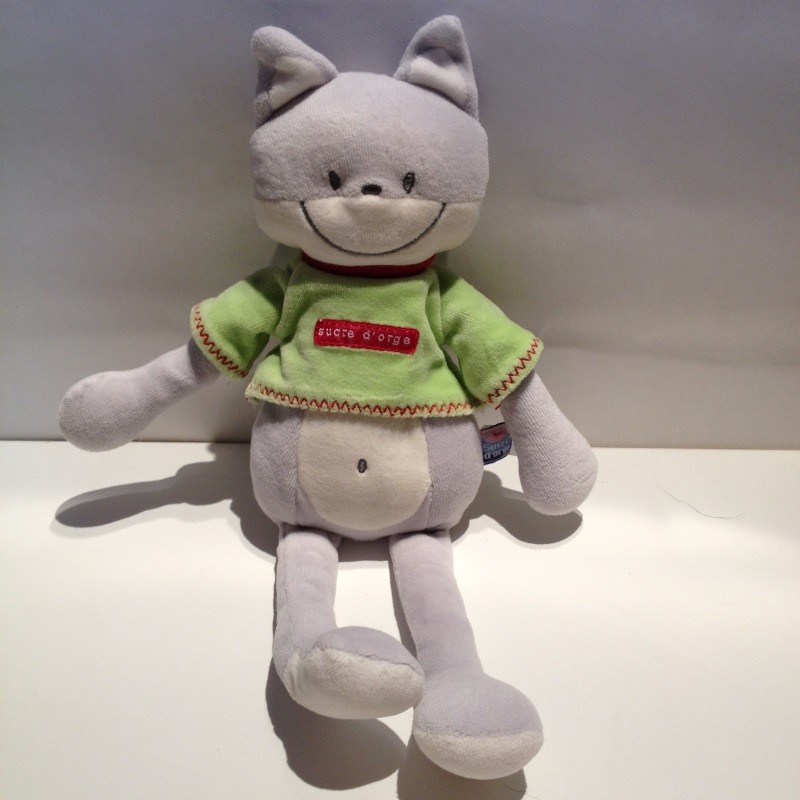 Doudou Chat Gris Tee Shirt Vert Sucre d Orge