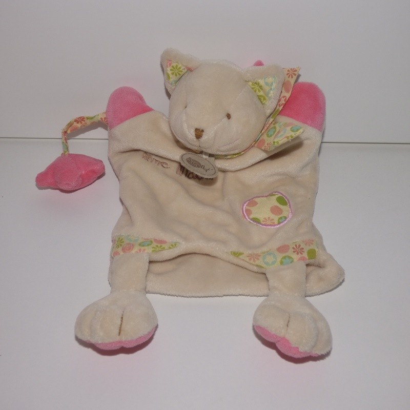 Doudou Chat Marionnette Mme Miaou Ecru et Rose Babynat