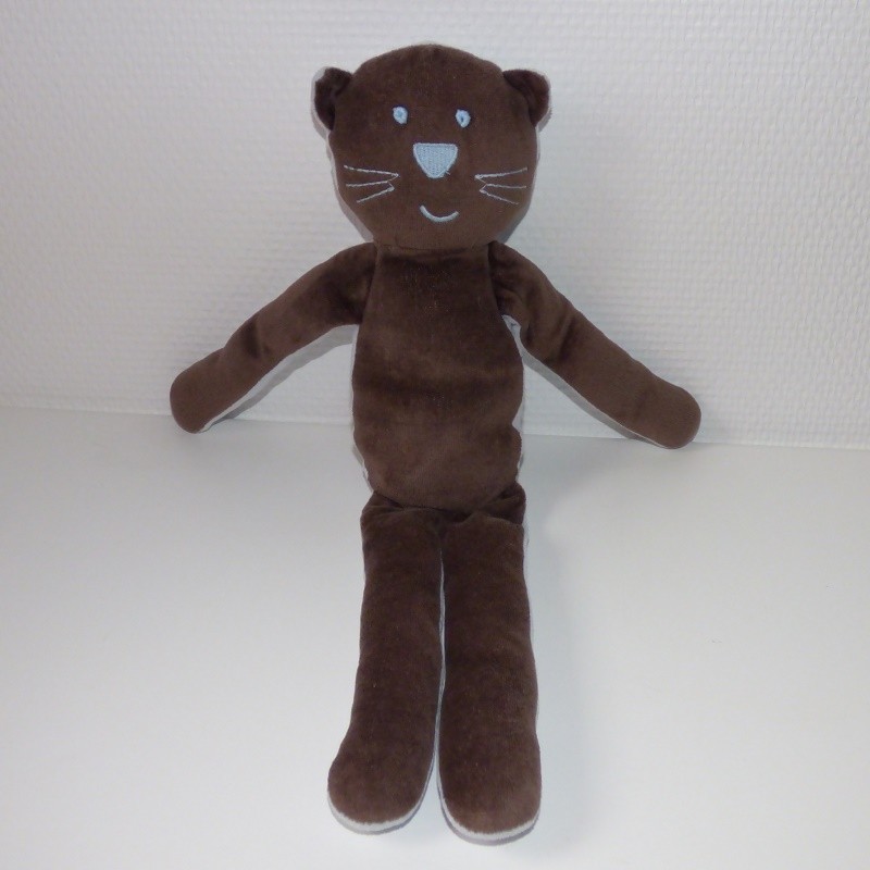 Doudou Chat Marron et Bleu 40 cms Bout Chou