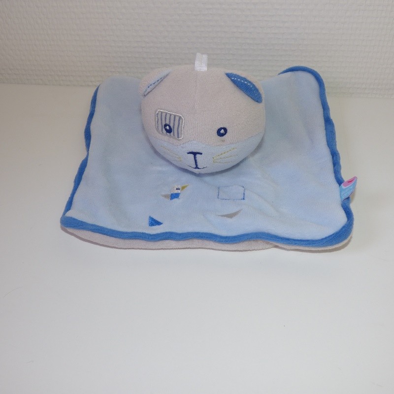 Doudou Chat Plat Bleu Sucre d Orge