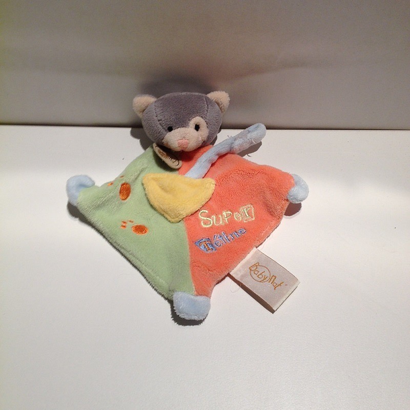 quantité de Doudou Chat Plat Carré Orange et Vert Super Tétine Babynat
