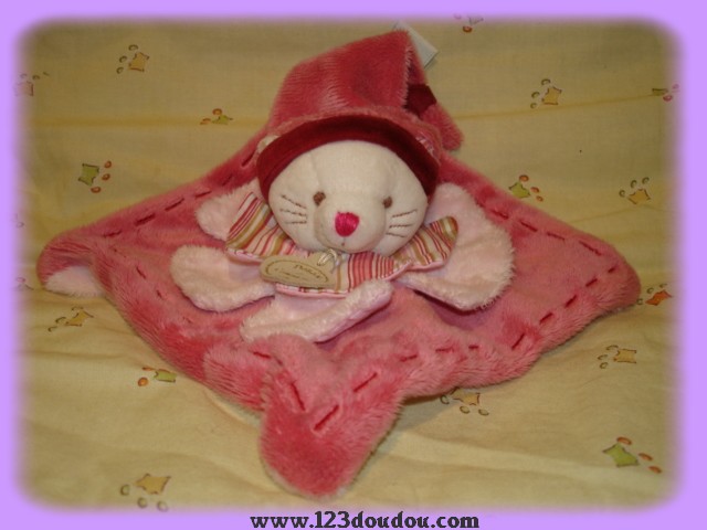 Doudou Chat Plat Carré Rose Doudou et Compagnie