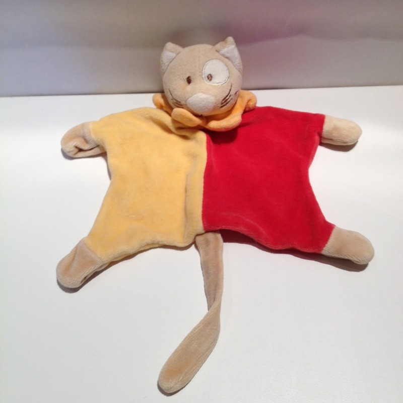 Doudou Chat Plat Jaun et Rouge Cocard Kimbaloo