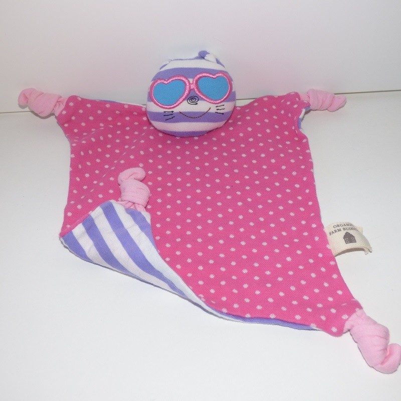 Doudou Chat Plat Mauve et Rose Organic Farm Buddies