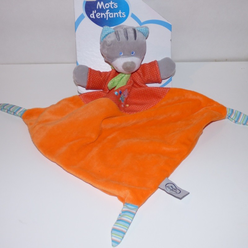 Doudou Chat Plat Orange et Rouge Mots d Enfants
