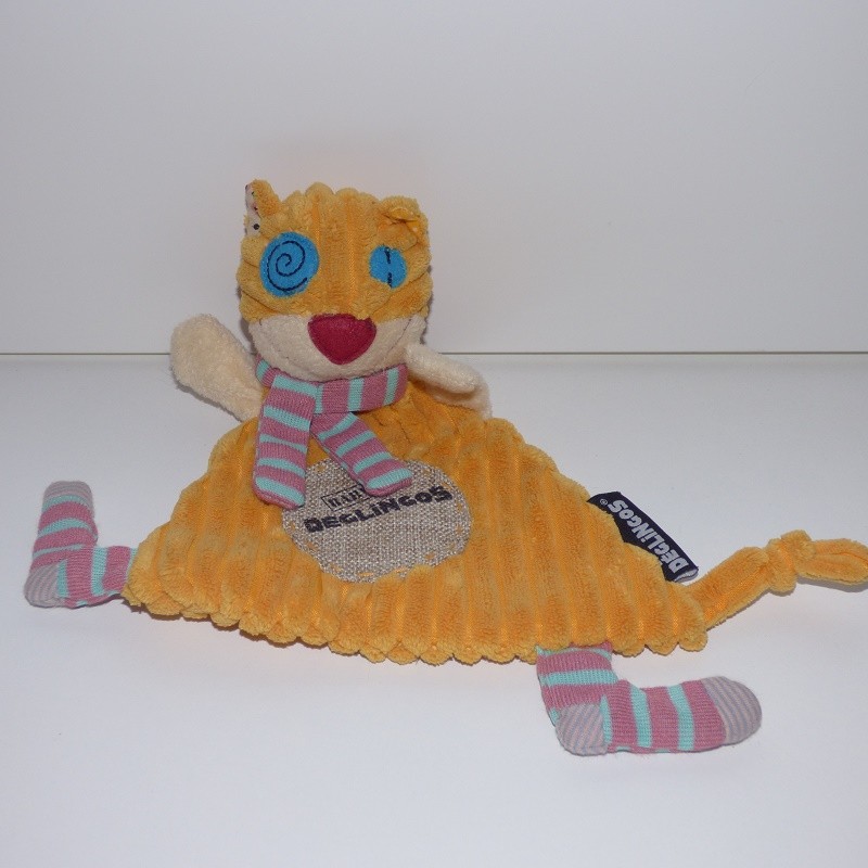 Doudou Chat Plat Orange Les Déglingos