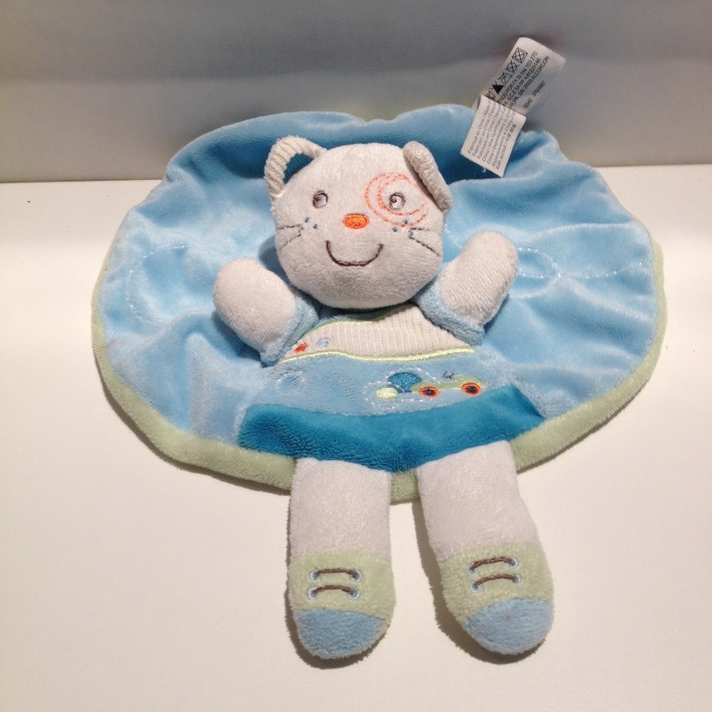 quantité de Doudou Chat Plat Rond Bleu Broderie Voiture Nicotoy