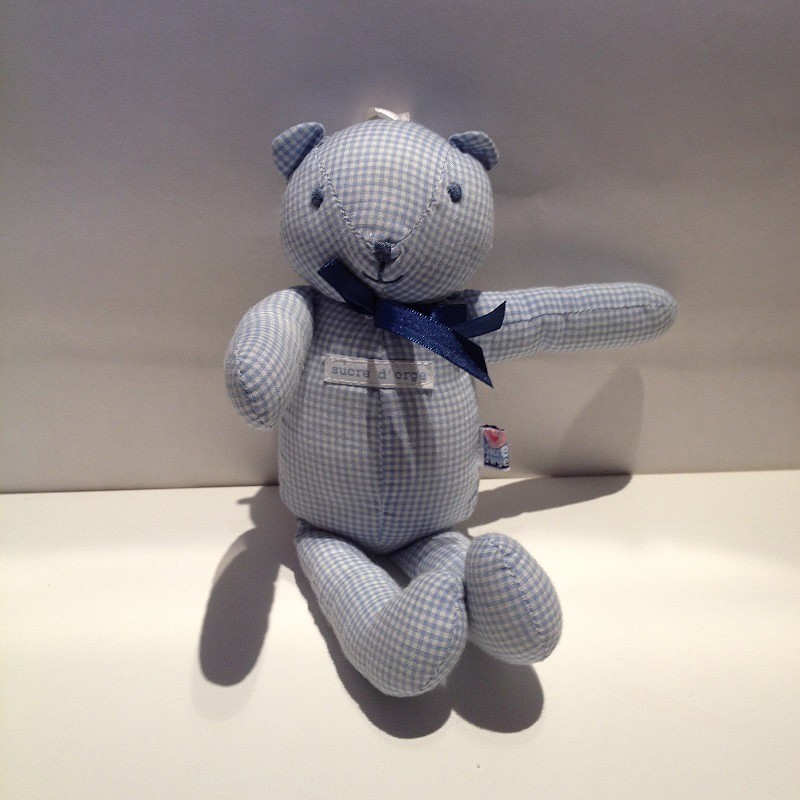 Doudou Chat Tissu Vichy Blanc et Bleu Sucre d Orge