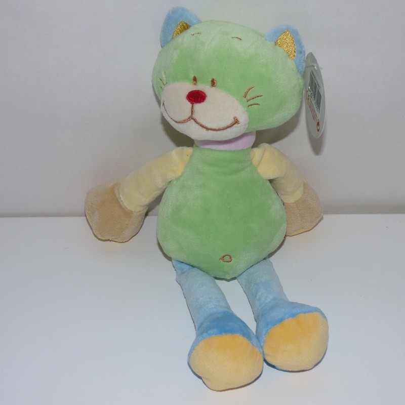 Doudou Chat Vert et Bleu Bengy