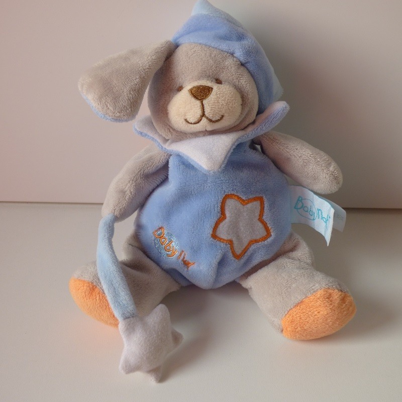 Doudou Chien Bleu et Gris Etoile Phosphorescente Babynat