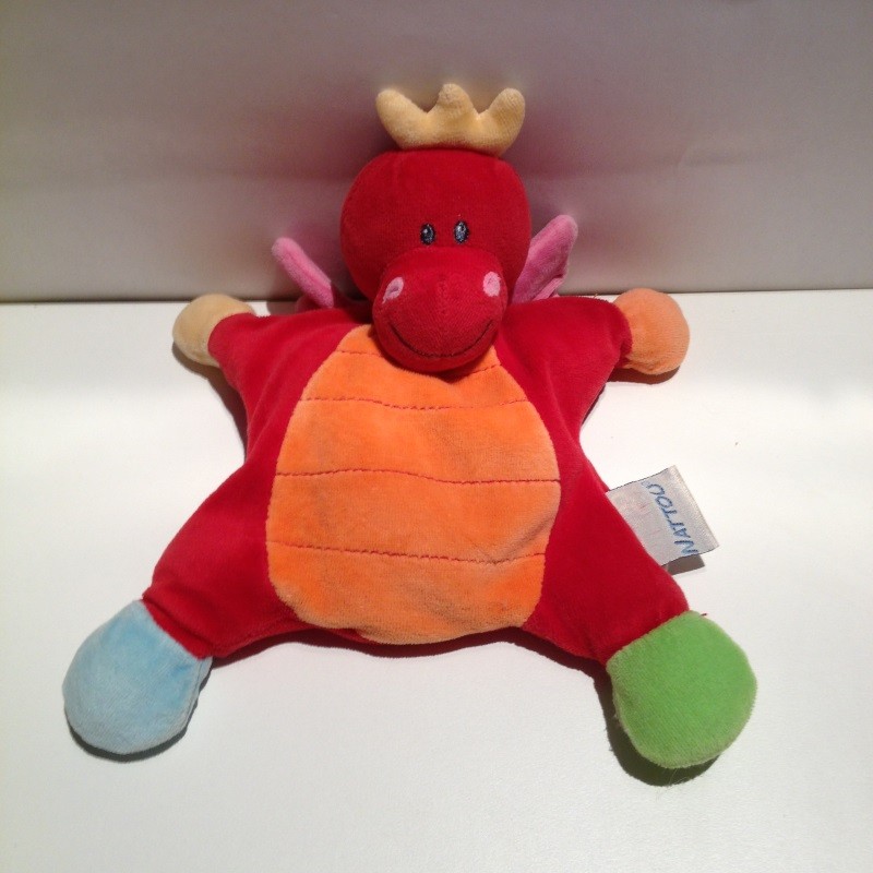 Doudou Dragon Semi Plat Rouge Grelot Nattou