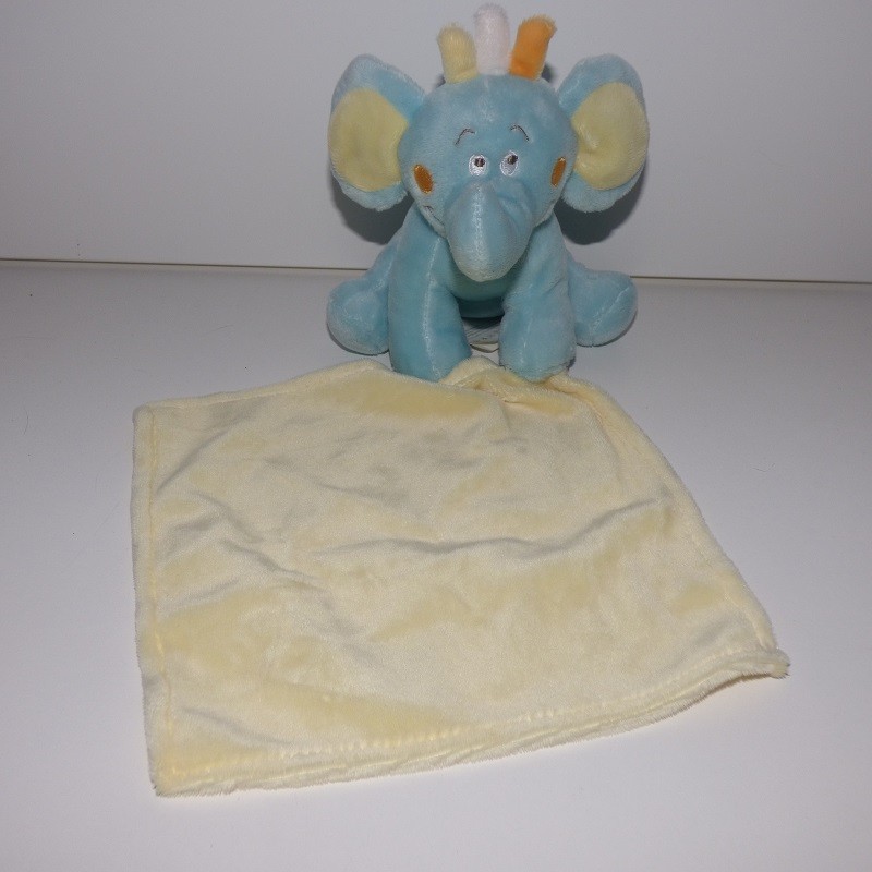 quantité de Doudou Eléphant Bleu Mouchoir Jaune Kimbaloo