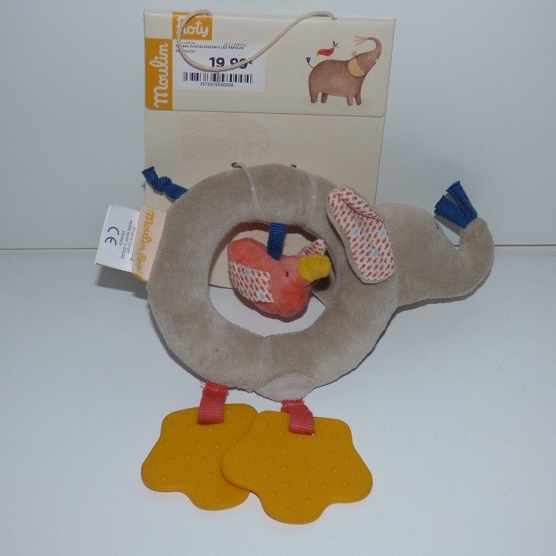 Doudou Eléphant Hochet Les Papoum Moulin Roty