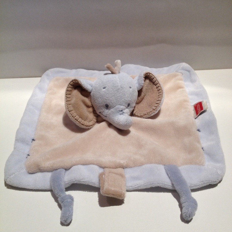Doudou Eléphant Plat Beige et Bleu Nattou