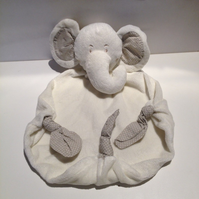 Doudou Eléphant Plat Blanc et Beige La Galleria