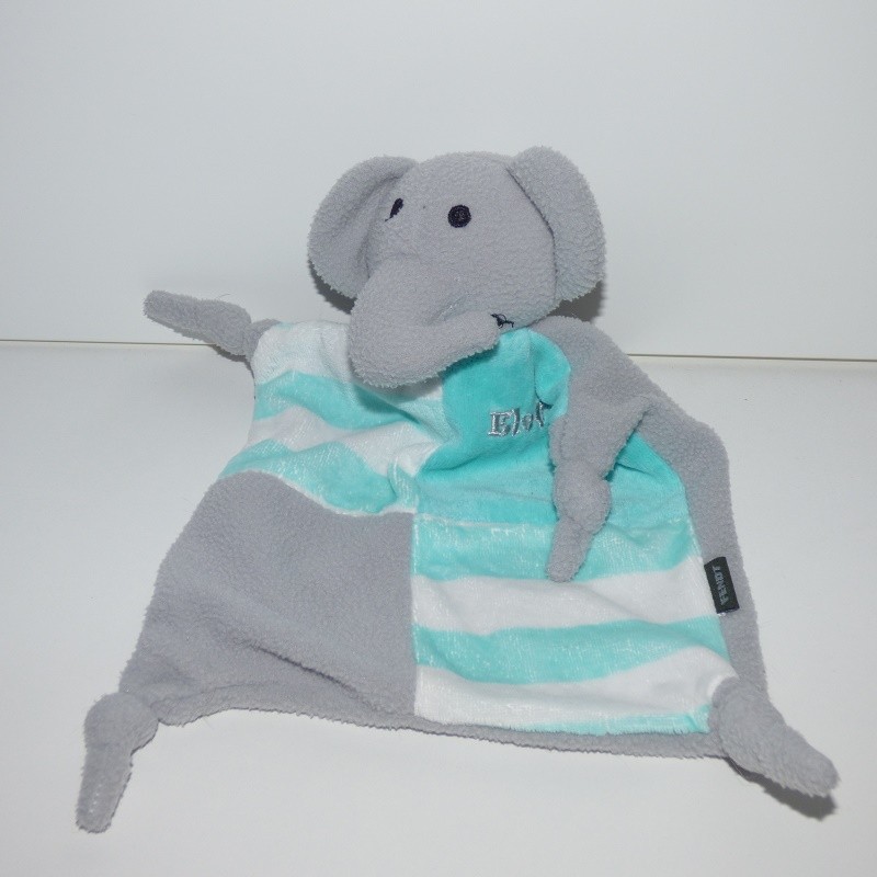 Doudou Eléphant Plat Bleu et Gris Fendt