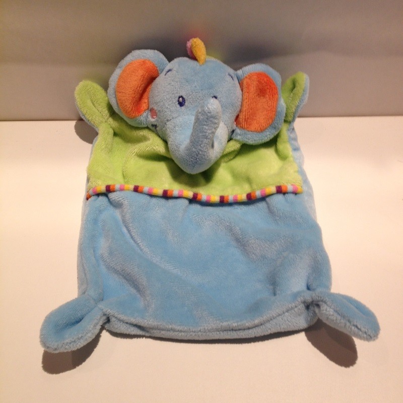 Doudou Eléphant Plat Bleu et Vert Nicotoy