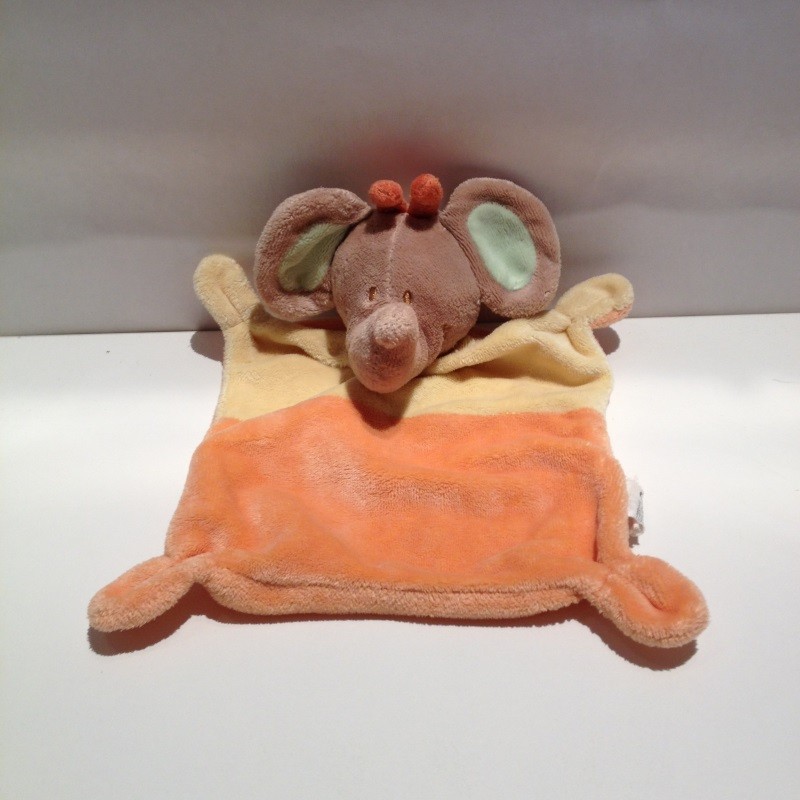 Doudou Eléphant Plat Carré Jaune et Orange Nicotoy