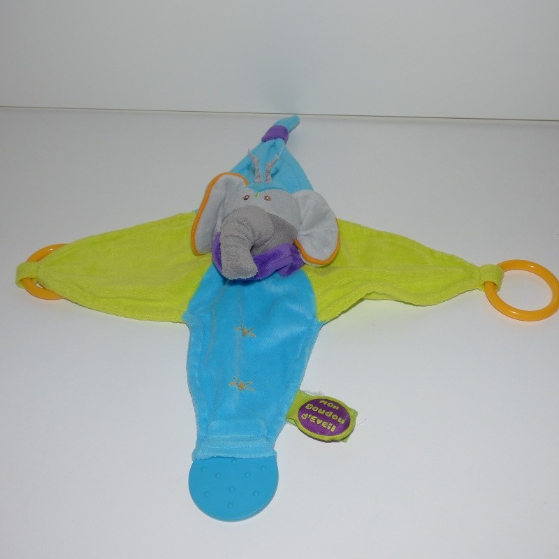 Doudou Eléphant Plat Vert et Bleu Doudou et Compagnie