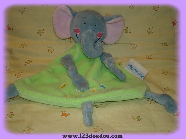 Doudou Eléphant Plat Vert Les Bébés d Elyséa