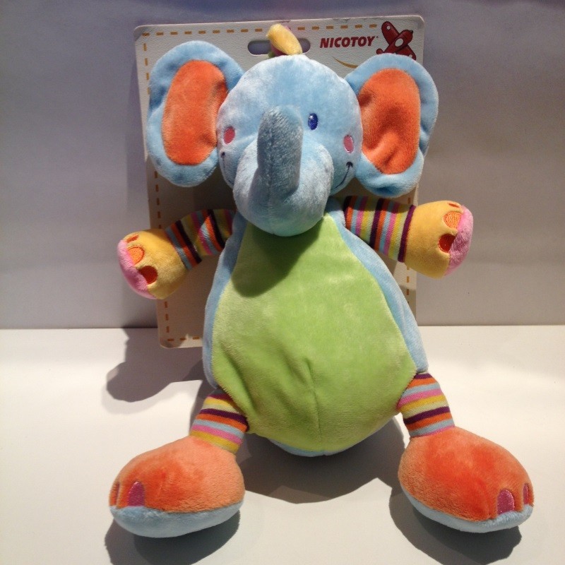 Doudou Eléphant Vert et Bleu Nicotoy