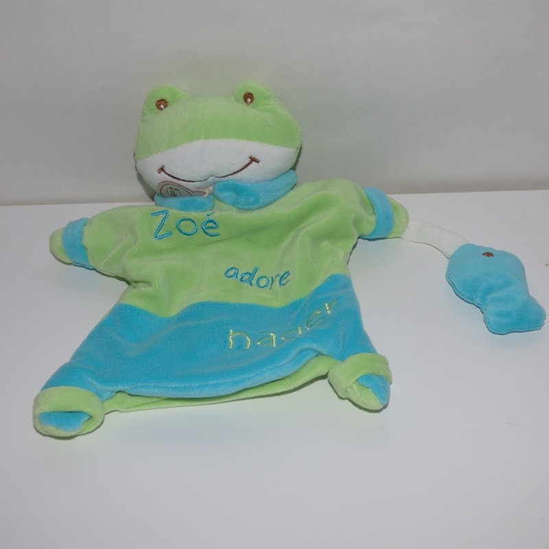 Doudou Genouille Zoé Verte et Bleue Marionnette Babynat