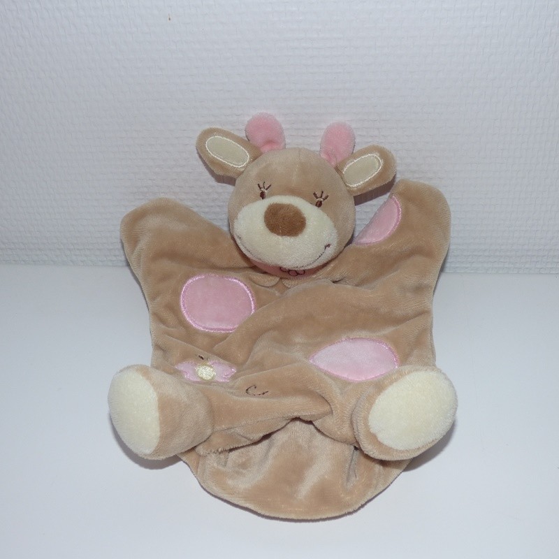 Doudou Girafe Sidonie Marionnette Beige et Rose Bébé 9