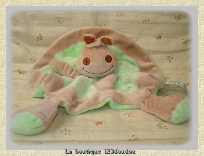 Doudou Hippopotame Plat Vert et Beige Tiamo