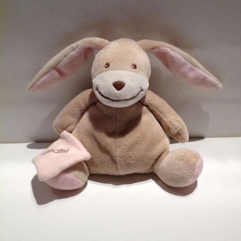 Doudou Lapin Beige et Rose Mouchoir Obaïbi Okaïdi