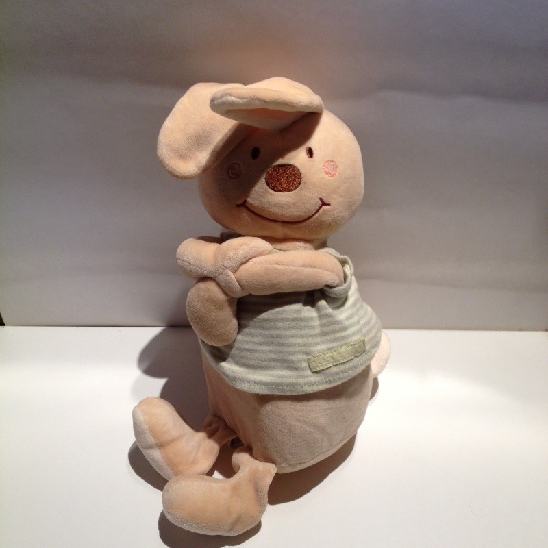 Doudou Lapin Beige Tee Shirt Vert Rayé Sucre d Orge