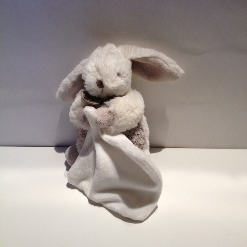 Doudou Lapin Blanc et Beige Mouchoir Babynat