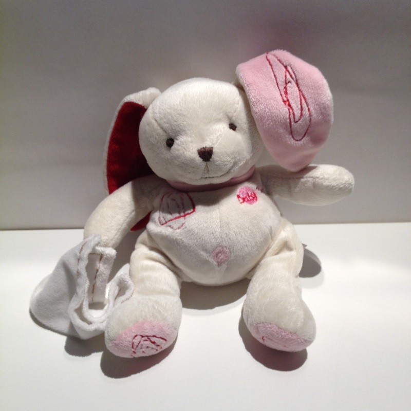 Doudou Lapin Blanc et Rose Gribouillis Babynat