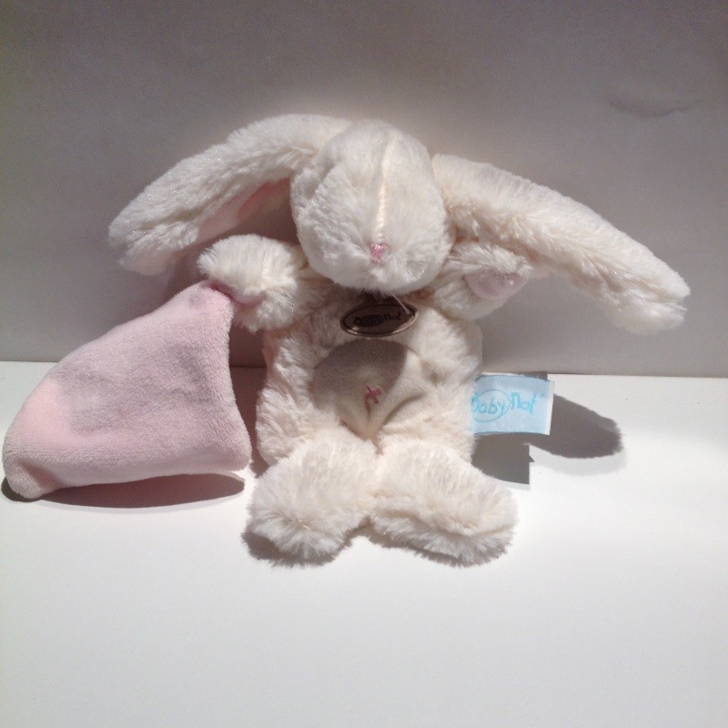 Doudou Lapin Blanc Mouchoir Rose Babynat