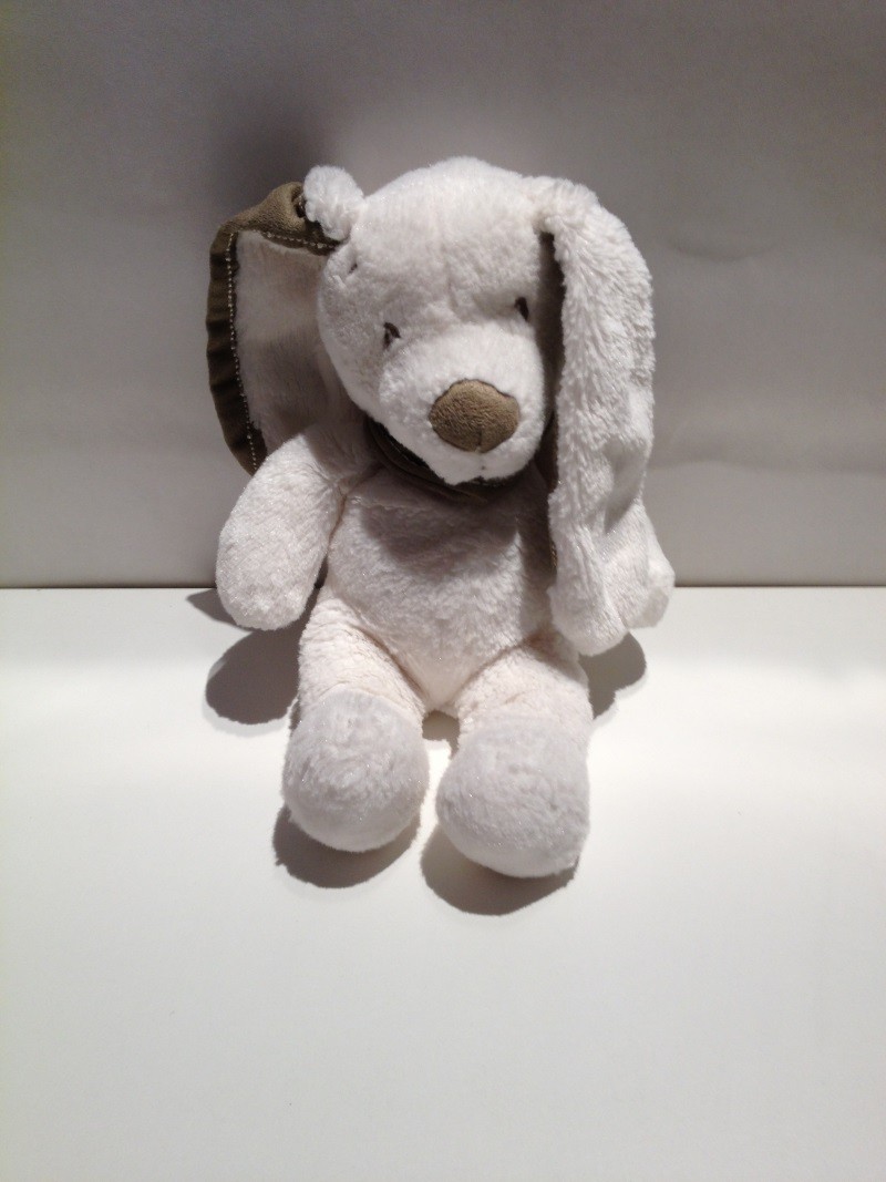 Doudou Lapin Blanc Oreilles Marron Tex