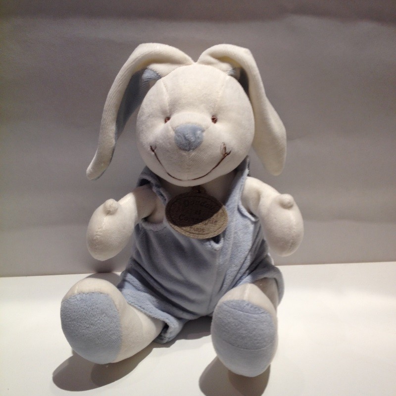 Doudou Lapin Blanc Salopette Bleue Doudou et Compagnie