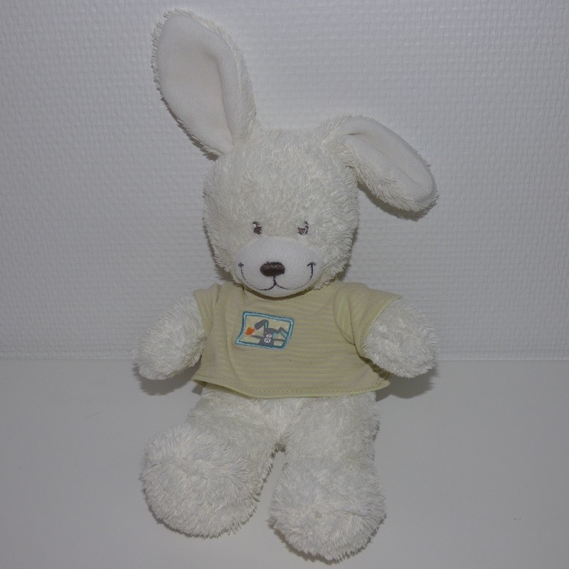 Doudou Lapin Blanc Tee Shirt Rayé Vert Tex