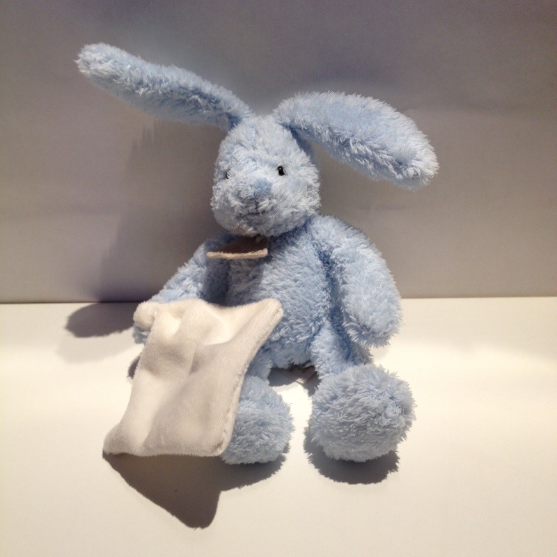 Doudou Lapin Bleu 20 cms Mouchoir Babynat