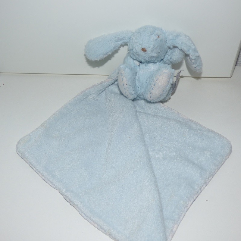 Doudou Lapin Bleu Mouchoir Tartine et Chocolat