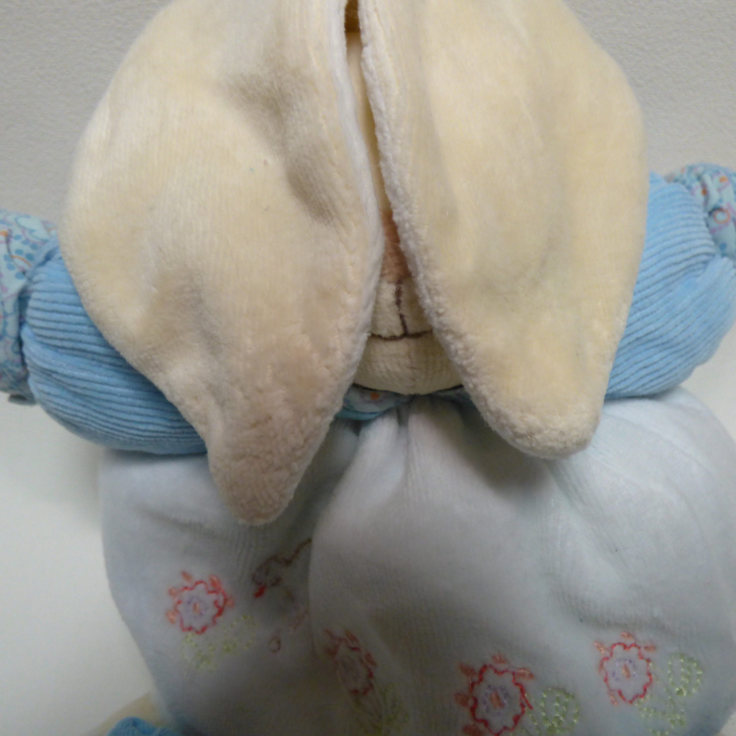 Doudou Lapin Boule Bleu Broderie Fleurs et Poussin Kaloo