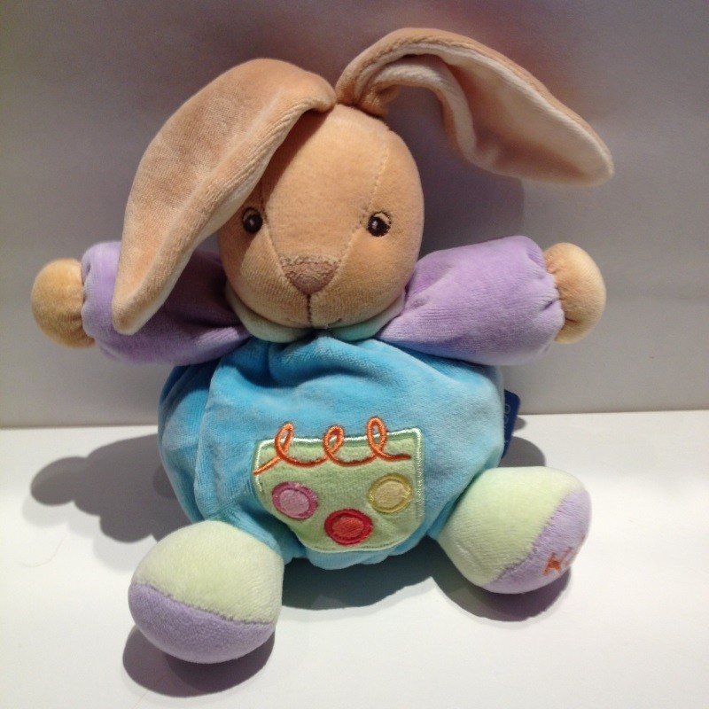 Doudou Lapin Boule Bleu et Mauve 3 Points Kaloo