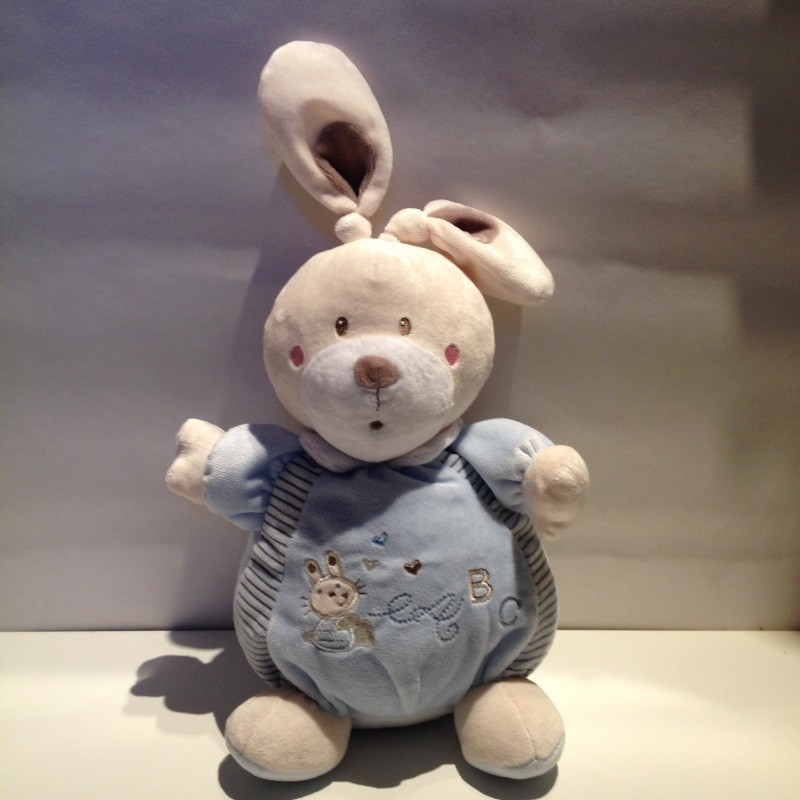 Doudou Lapin Boule Bleue Broderie Alphabet Nicotoy